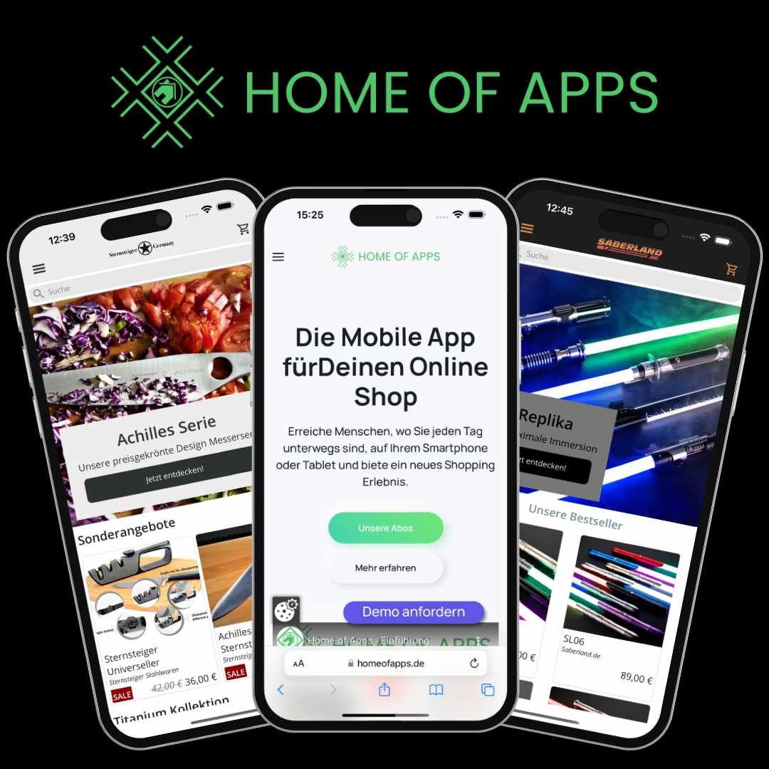 Die Zukunft des E-Commerce ist mobil – und mit Home of Apps machen wir es einfacher denn je, Ihren Online-Shop in eine leistungsstarke native Mobile App zu verwandeln. Unser Produkt ermöglicht es Shop-Betreibern, ohne großen technischen Aufwand eine eigene App für iOS und Android zu veröffentlichen und so mehr Umsatz, bessere Kundenbindung und ein erstklassiges Shopping-Erlebnis zu schaffen.
