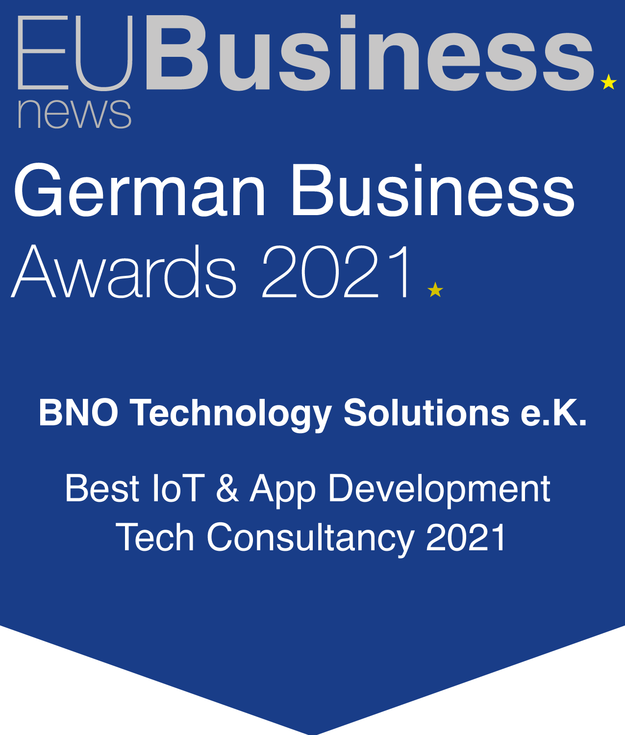 Im zweiten Jahr in Folge wurden wir von der Jury der German Business Awards, die jährlich von EU Business News verliehen werden, in der Kategorie Best IoT & App Development Tech Consultancy nominiert und mit dem German Business Award 2021 ausgezeichnet.